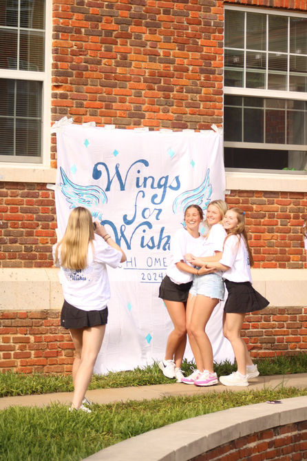 Chi Omega’s greatest source of fundraising is through our annual “Wings for Wishes” bracket-style wing eating competition in the Spring and our annual "Swishes for Wishes" basketball tournament in the Fall. Wish Week is another event where we hold many fundraising activities that include, Pie a Chi-O, donut & cookies stands, silent auctions, t-shirt sales, and many others. In-chapter fundraisers, such as Chi O Yard Sale, is one of the many other ways we raise money for Make-A-Wish.